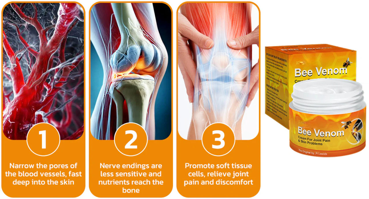Furthermore, research has shown that Bee Venom Pain Suppression Joint Healing Cream improves overall joint and bone health, solidifying its reputation as a reliable and powerful solution for bone and joint issues.